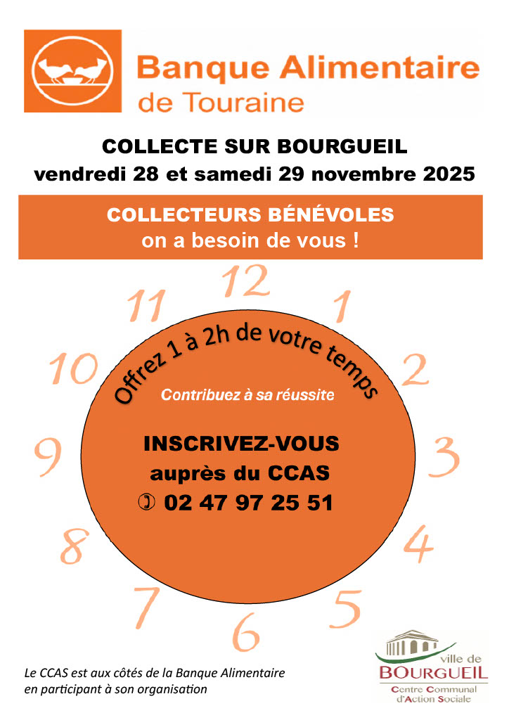 Organisée en partenariat avec le CCAS de Bourgueil, la prochaine collecte de la Banque alimentaire est programmée les 28 et 29 novembre 2025.