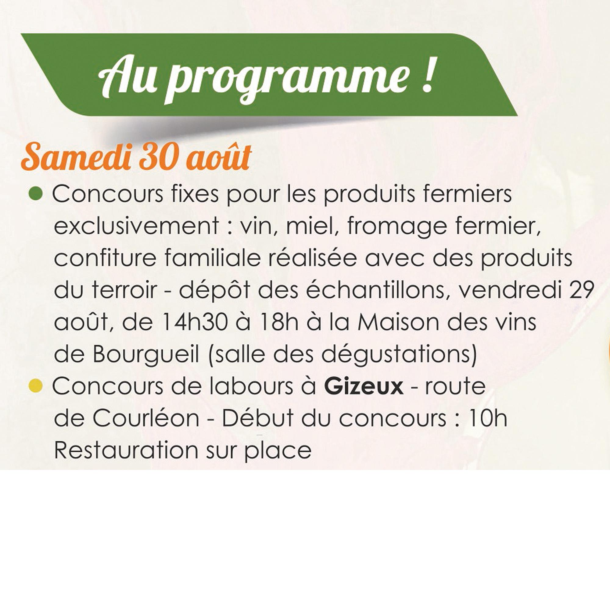 Dans le cadre du Comice rural 2025, l’association du Comice agricole de l’arrondissement de Chinon organise, le samedi 30 août, des concours fixes de produits fermiers exclusivement : vin, miel et fromage et confiture familiale réalisée avec des produits du terroir. Ces concours sont ouverts à tous. Dépôt des échantillons, le vendredi 29 août 2025, de 14h30 à 18h, à la Maison des vins de Bourgueil (salle des dégustations 18 place de l’Eglise). Pour tout renseignement : 06 80 31 16 04.