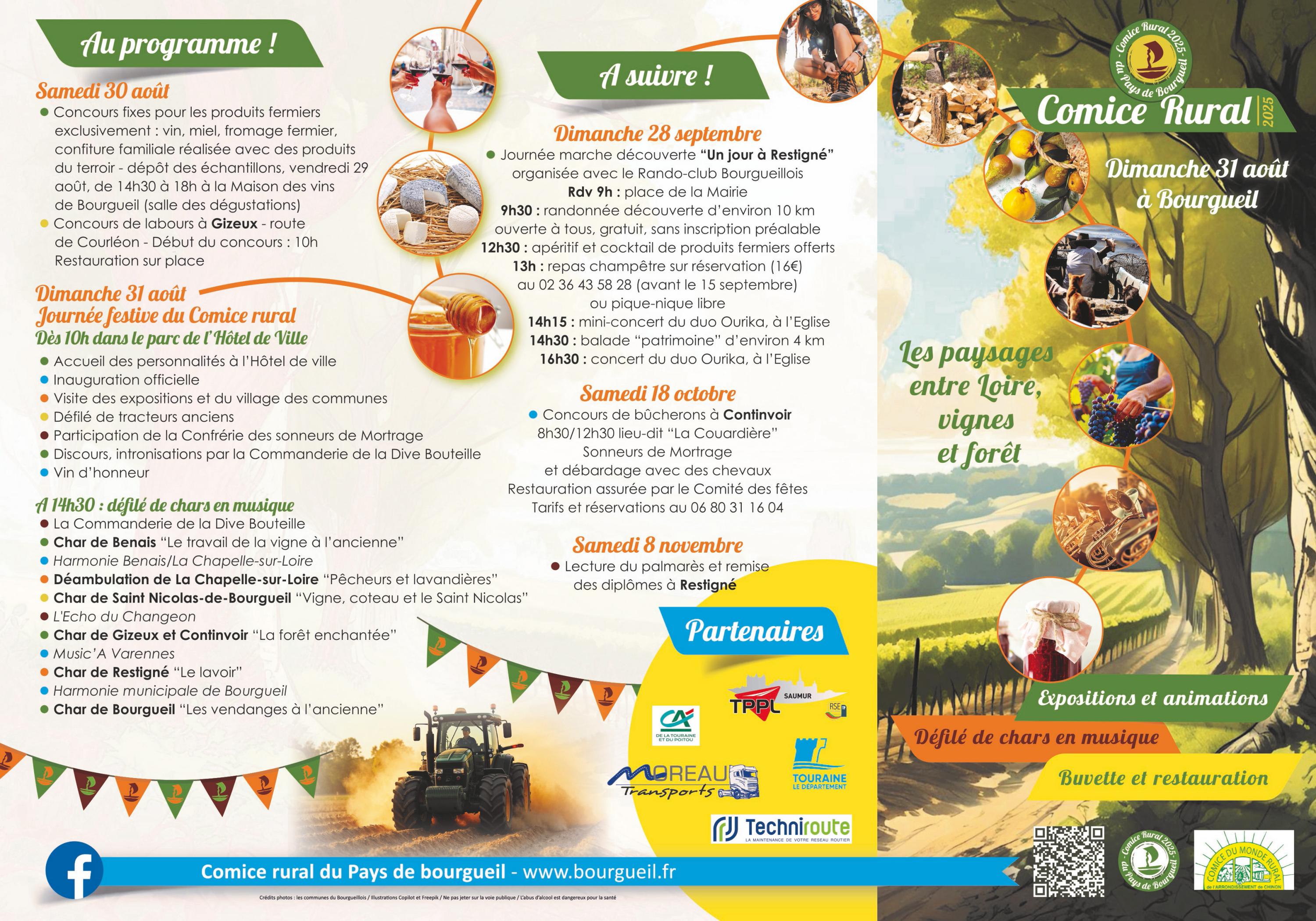 Au programme, des expositions dans le parc de la Mairie et aux Halles, de 10h à 17h : village des communes et des partenaires institutionnels, expositions patrimoine sur les cultures, village des producteurs du territoire, expositions de tracteurs et de véhicules anciens, et de nombreuses surprises.