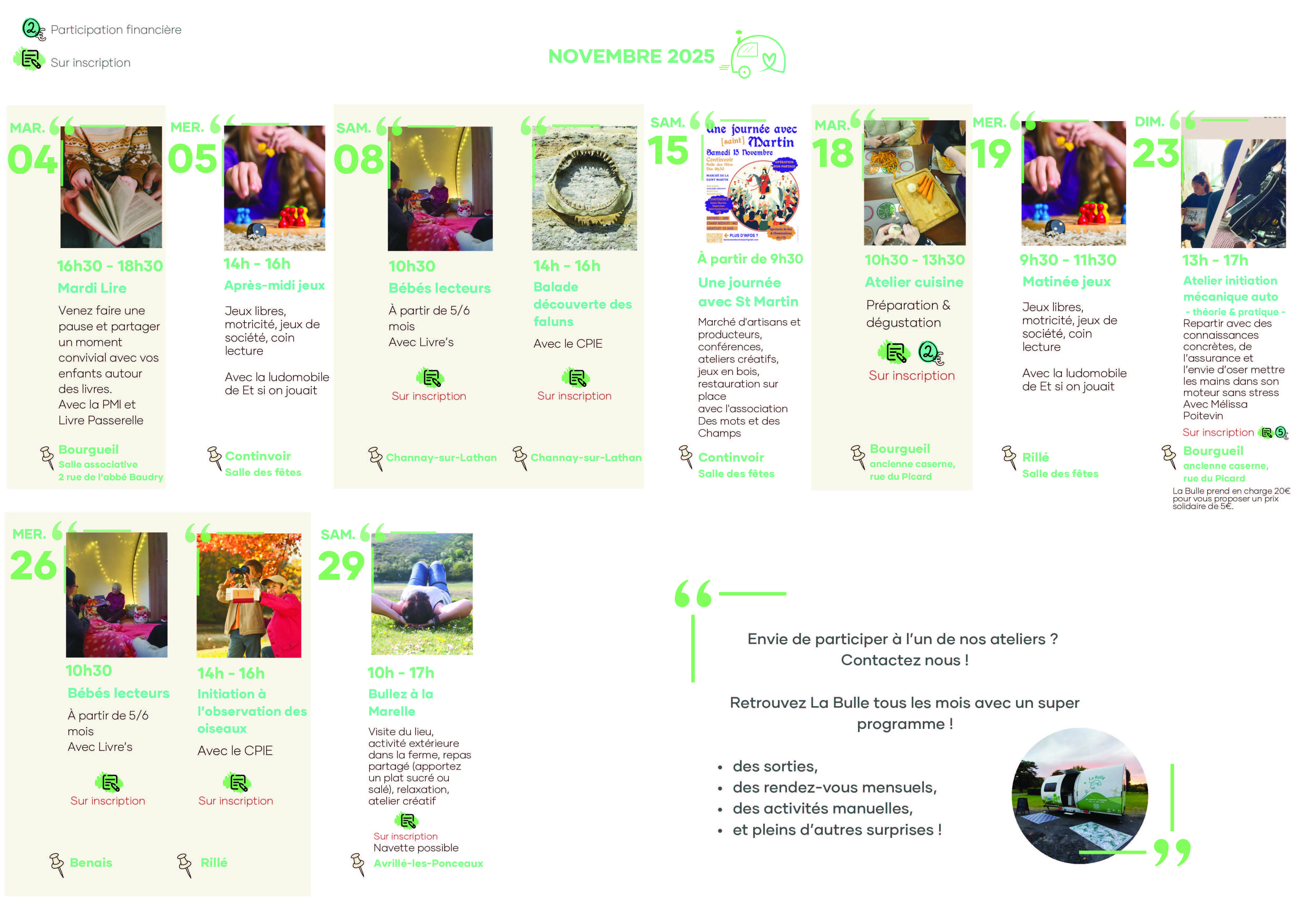 Participation : La Bulle prend en charge 20 €, participation solidaire de 5 € par personne
