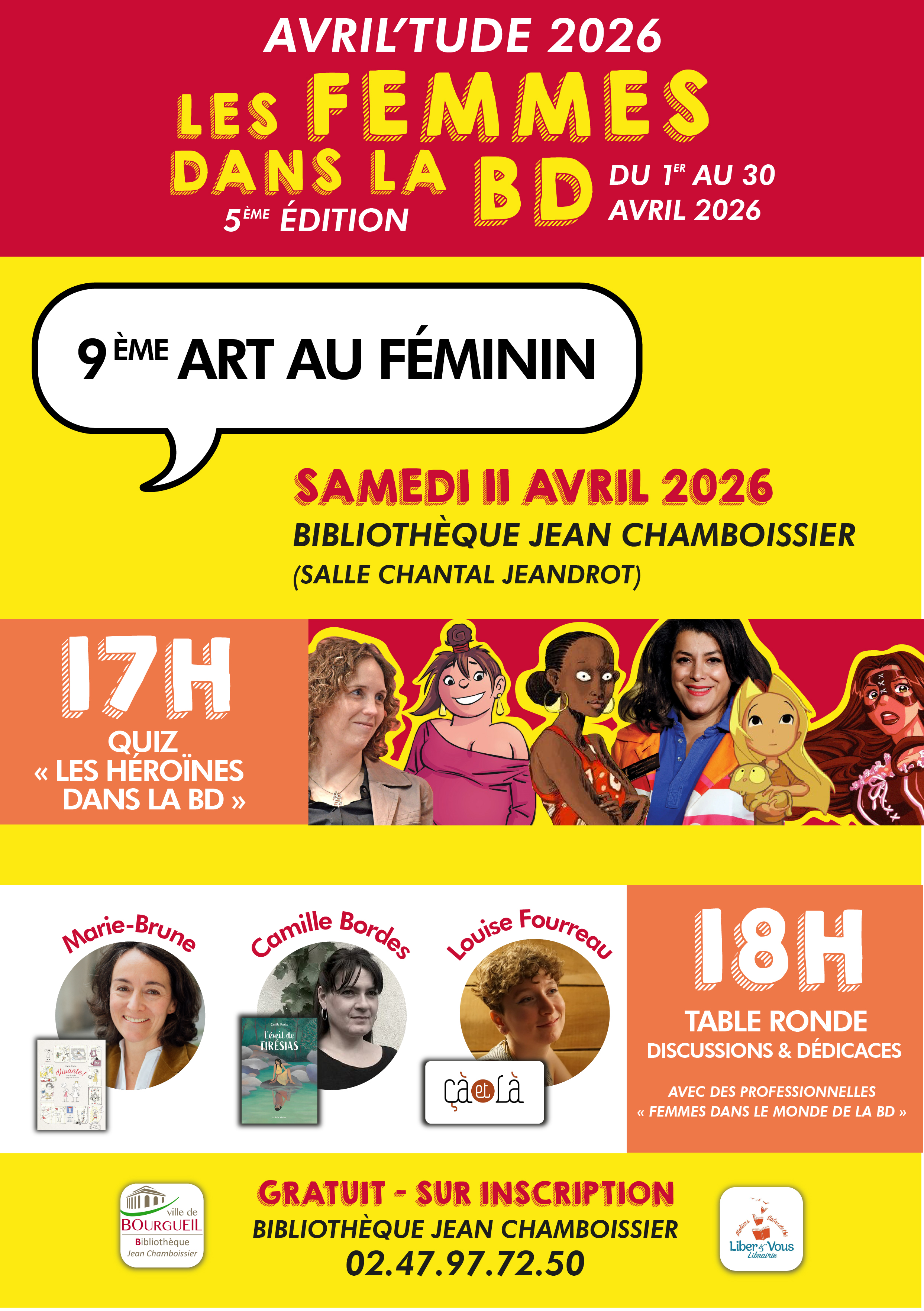Table ronde « Femmes dans le monde de la BD » avec Marie-Brune, Camille Bordes et Louise Fourreau (autrices et éditrices), suivie de discussions et de séances de dédicaces.