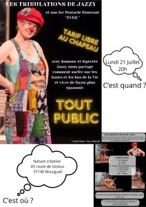 Voir les détails »Spectacle itinérant “Éveil” avec Jazzy, poésie, humour, danse, chant