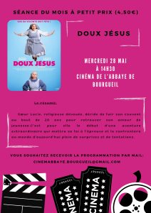 Doux Jésus Mercredi 28 mai à 14h30 Séance senior Vendredi 30 mai à 20h30 Des jours meilleurs Samedi 31 mai à 20h30 Dimanche 1 juin à 17h00 Mardi 3 juin à 20h30