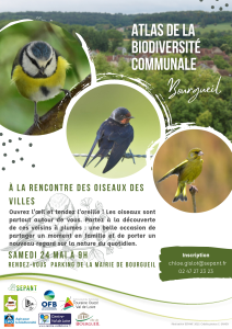 Dans le cadre de l’Atlas Biodiversité Communal de Bourgueil, la LPO propose une sortie découverte des oiseaux des villes. Ouvrez l'œil et tendez l'oreille ! Les oiseaux sont partout autour de vous. Partez à la découverte de ces voisins à plumes : une belle occasion de partager un moment en famille et de porter un nouveau regard sur la nature du quotidien. RDV à 9h sur le parking de la Mairie Renseignements et inscriptions au 02 47 27 23 23