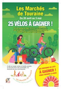 Les Commerçants des Marchés de Touraine, organisent une opération de promotion des marchés du 20 avril au 3 mai. Le marché de Bourgueil sera animé le mardi 23 avril.  Avec la roue de la chance, l’animatrice Laura fera gagner des vélos et de nombreux lots, des vélos, des entrées cinémas, des entrées piscine, des savons artisanaux et autres produits de notre région et nos sacs cabas réutilisables.