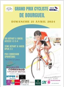 1er départ à 10h30 > ACCESS 1-2-3-4 2ème départ à 14h30 > open 2-3 Prix Corrivaud sprinteurs Départ rue de Santenay près de la cité de Pavée   Grand prix organisé par l’Amicale Cycliste du Bourgueillois