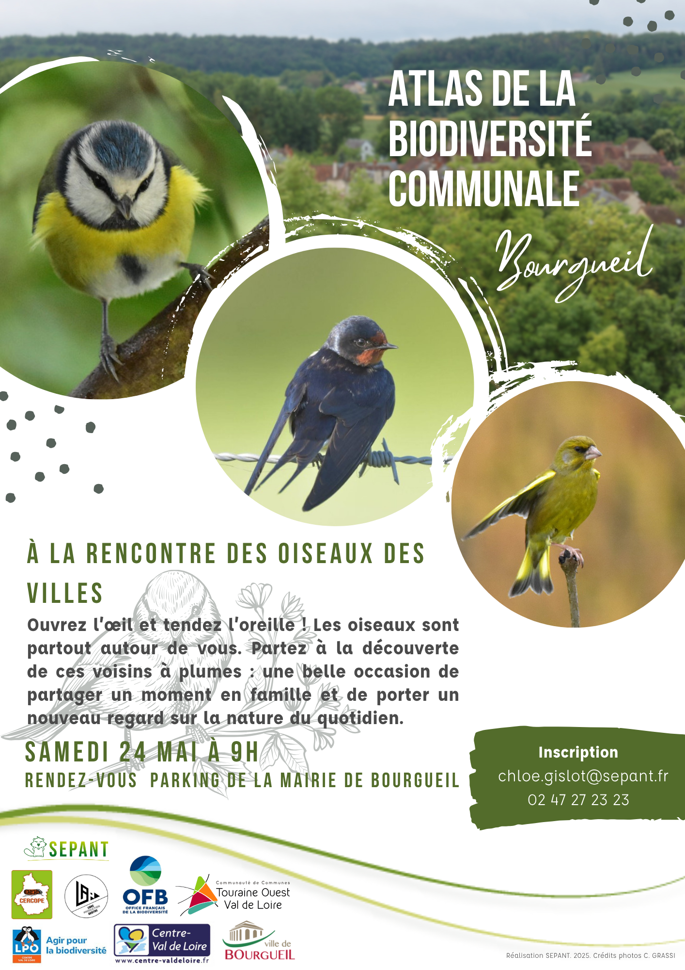 Dans le cadre de l’Atlas Biodiversité Communal de Bourgueil, la LPO propose une sortie découverte des oiseaux des villes.
