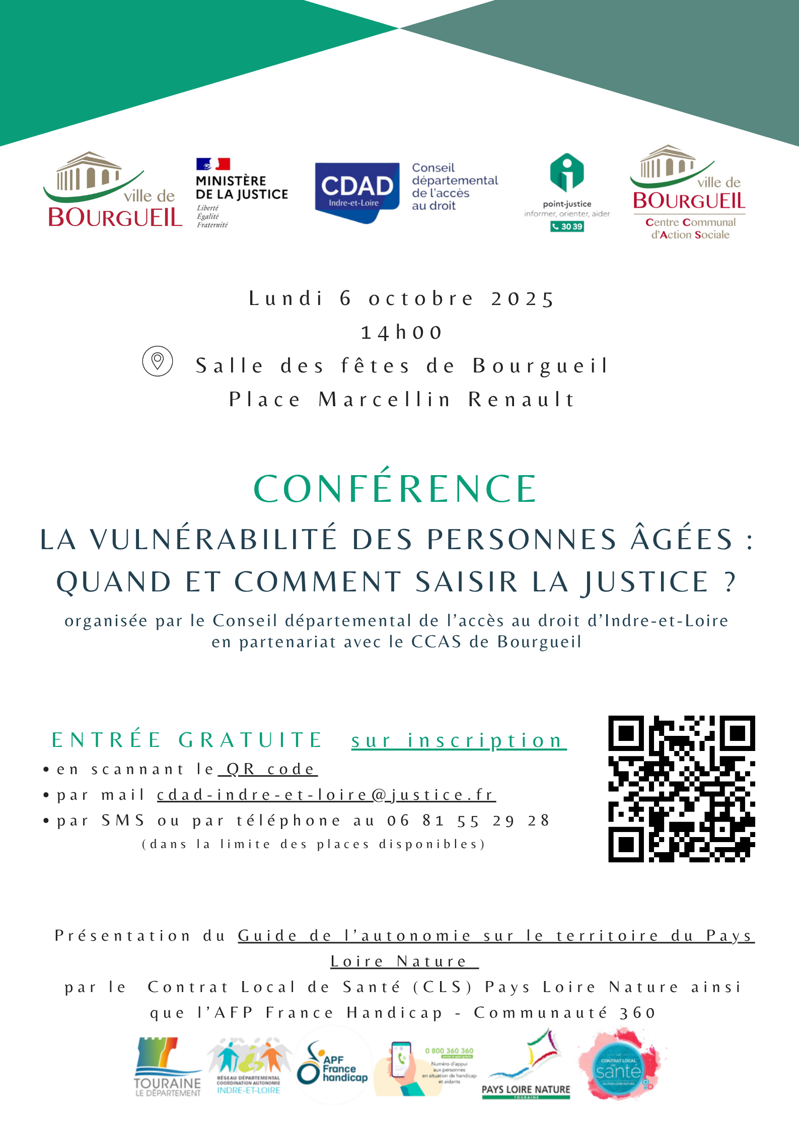 Entrée gratuite sur inscription par QR code, cdad-indre-et-loire@justice.fr ou au 06 81 55 29 28