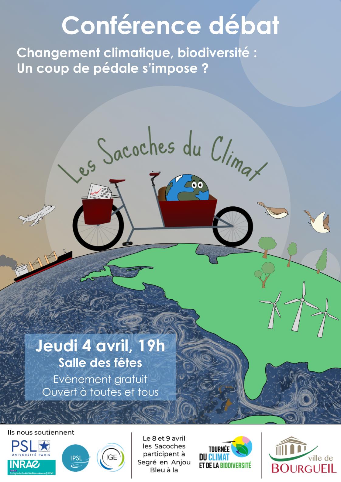 A Bourgueil, les Sacoches du Climat interviendront le jeudi 4 avril. En journée, ce sont 3 classes de troisième des collèges Pierre de Ronsard et Le Jouteux qui verront leur venue tandis que le soir, l’équipe des Sacoches donnent rendez-vous à tous les habitants et les habitantes à la salle des fêtes à 19h. « C’est important de donner l’occasion à chacun d’être mieux renseigné sur ces sujets majeurs. » Venez nombreuses et nombreux !