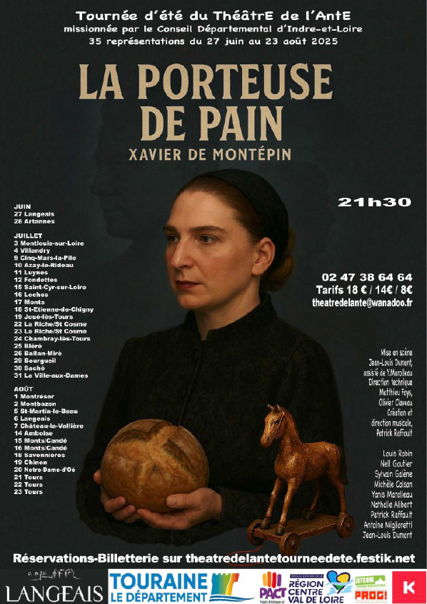 L’histoire de Jeanne Fortier, injustement accusée, emprisonnée et séparée de ses enfants, et qui devient vingt ans plus tard la porteuse de pain, pour tenter de retrouver liberté et dignité…sera ensuite portée à l’écran, trois versions au cinéma muet, un film de 1934 (avec Fernandel), un autre film en 1962 (avec Jean Rochefort, Philippe Noiret et Suzanne Flon) et enfin une série télévisée en 1973,avec Denise Grey et toutes les vedettes de l’époque. Alors pour nous, 2025 sera l’année du mélodrame, mélodrame bien sûr mêlé de couplets… L’année de La Porteuse de Pain,…