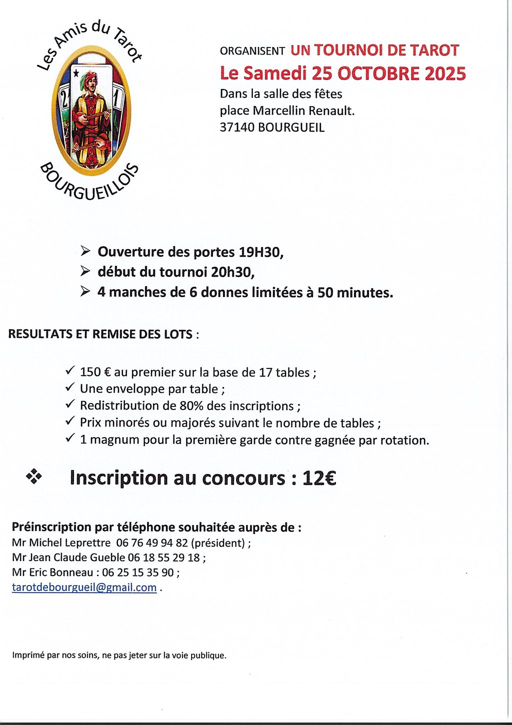 L’association Les Amis du Tarot Bourgueillois vous invite à son grand tournoi de tarot :