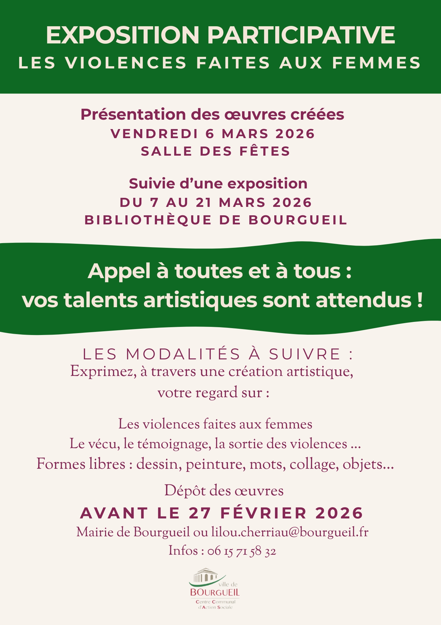 Lieu : Mairie de Bourgueil ou par mail : lilou.cherriau@bourgueil.fr (support numérique accepté).